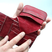 小銭入れは蓋が小銭の受け口の代わりになり、左での手首にひっかかるので出し入れがとても便利です。 |