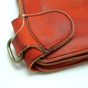 製品後、ドラムウォッシュをかけバッフィングしているのでアタリがでてオールド感が出ています。真鍮製の丸角カンここにウォレットチェーンをつけます。