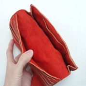 本体裏側はシンプルなプレーンタイプです。丸角カンをしっかりと縫い付けているので取れる心配もありません。