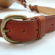 本体裏側とベルトレザー裏側共にヌメ革(植物タンニンバケッタレザー製)を使いベルトの厚み、強度をアップしています。縁は磨きをかけた後、同色にて磨き引き締めています。※ベルトループは一部、手縫いが入ります。