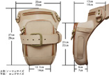 縦から下に向けてもアールがついているので太ももに程よくフィットし。両サイドにはDカン、キーホルダーなどぶら下げられる他、サイドループがついているので携帯ケースを装着出来ます。 |