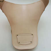 真正面から見ると分かるように1002タイプよりボディへの接着面積が大きく根元のベルト幅を大きくする事で物をいれて重量があっても腰への負担がかなり軽減され疲れにくくなっています。 |